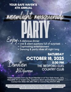 Your Safe Haven, Inc. serves as the designated Crime Victim Resource Center for Bedford County, offering compassionate, comprehensive support to individuals impacted by domestic violence, sexual assault and other serious crimes.